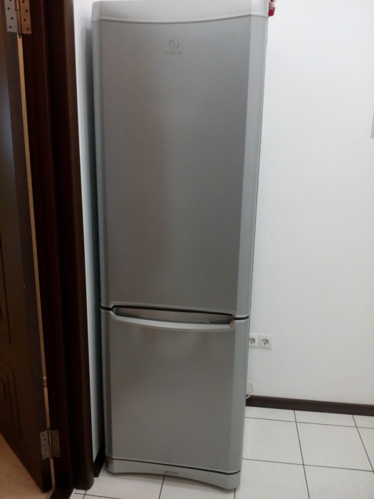Холодильник "Indesit", двухкамерный, серебристый, бывший в эксплуатации, самовывоз покупателем