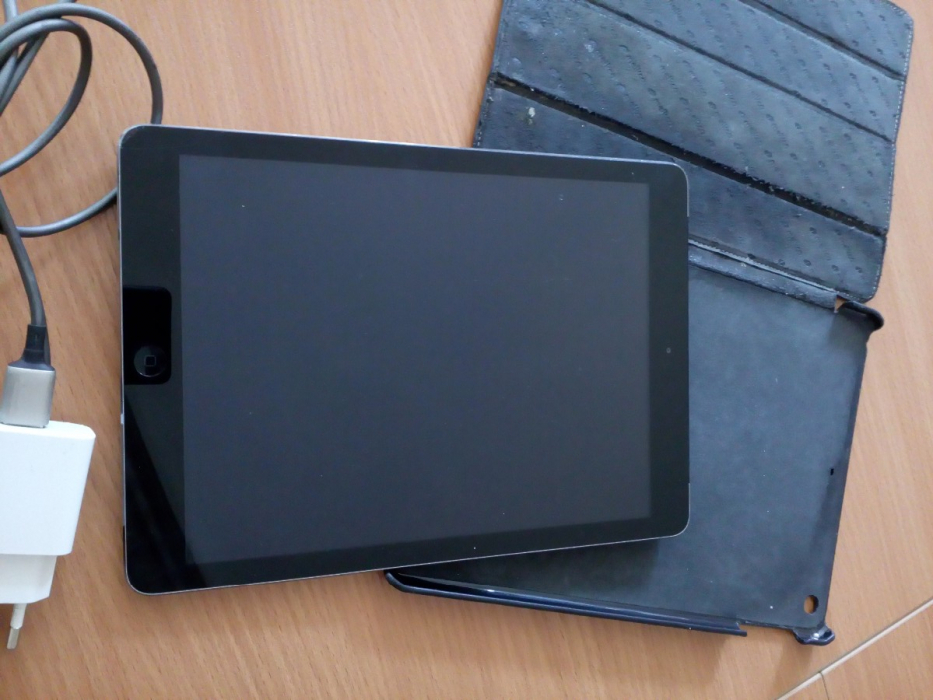 Портативный компьютер Apple IPad, бывший в употреблении, требует ремонта, без технической документации, в комплекте зарядное устройство и защитный чехол-книга, продается по фактическому состоянию